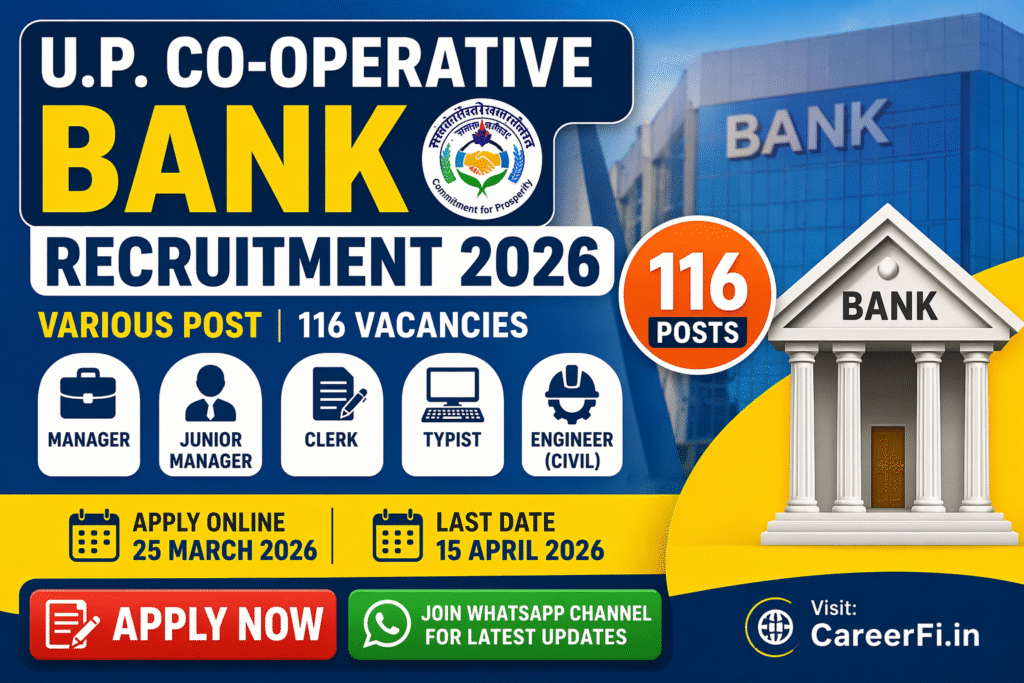 Govt Jobs (Sarkari)UP Co-operative Bank Recruitment 2026 Apply Online for 116 Posts | CareerFi.in   Govt Jobs (Sarkari) UP Co-operative Bank Recruitment 2026 Apply Online for 116 Posts | CareerFi.in Read Post »