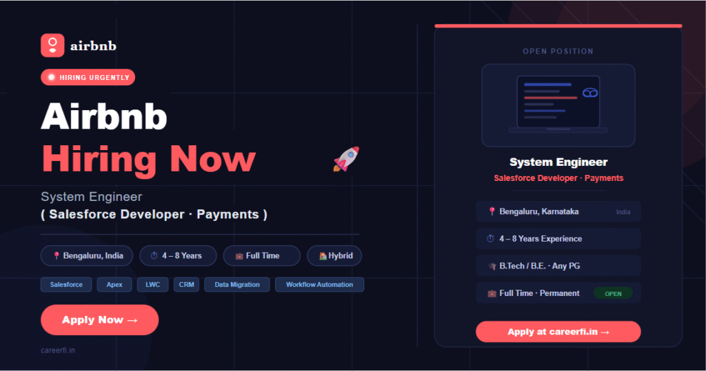Freshers Jobs-2026Airbnb Hiring System Engineer (Salesforce Developer) in Bengaluru | Apply Now 2026   Freshers Jobs-2026 Airbnb Hiring System Engineer (Salesforce Developer) in Bengaluru | Apply Now 2026 Read Post »