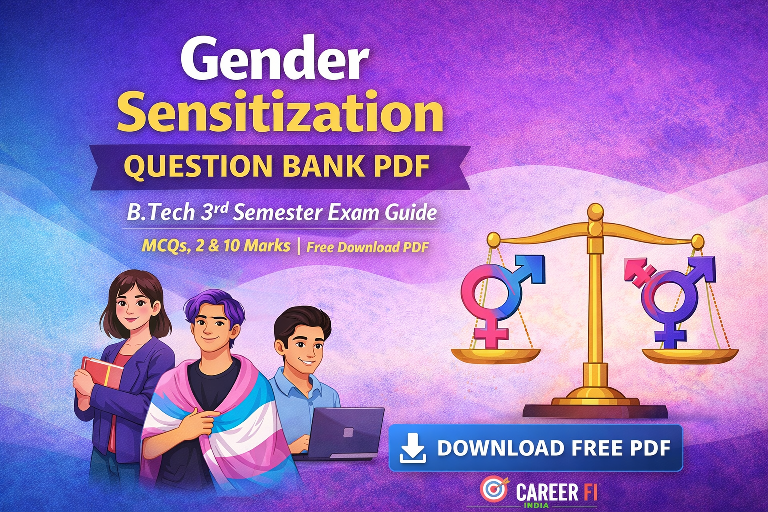 To solve this problem, Career FI India has prepared a complete Gender Sensitization Question Bank PDF containing MCQs, 2-mark, 5-mark, and 10-mark answers, written in bookish, examiner-friendly language.