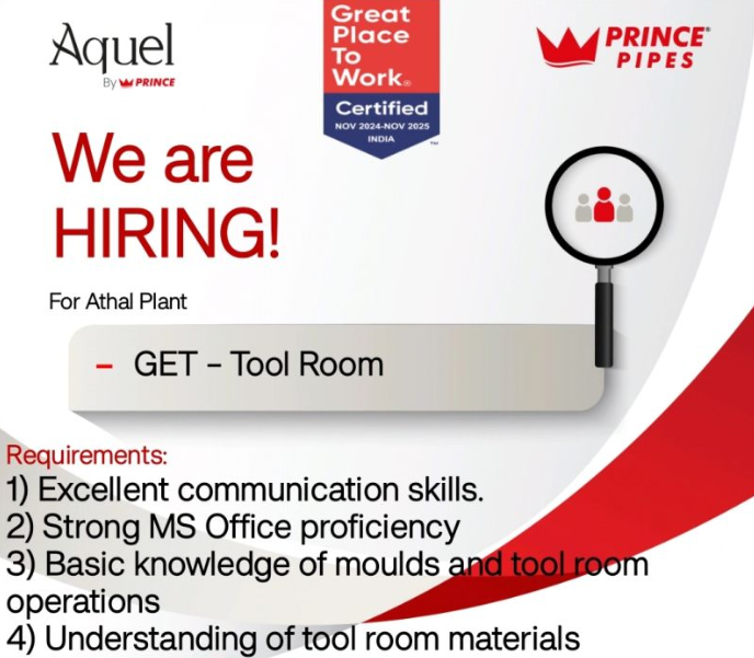 PRINCE PIPES IS HIRING NOW – Graduate Engineer Trainee (GET) Tool Room Department | Athal Plant, Silvassa (DNH)